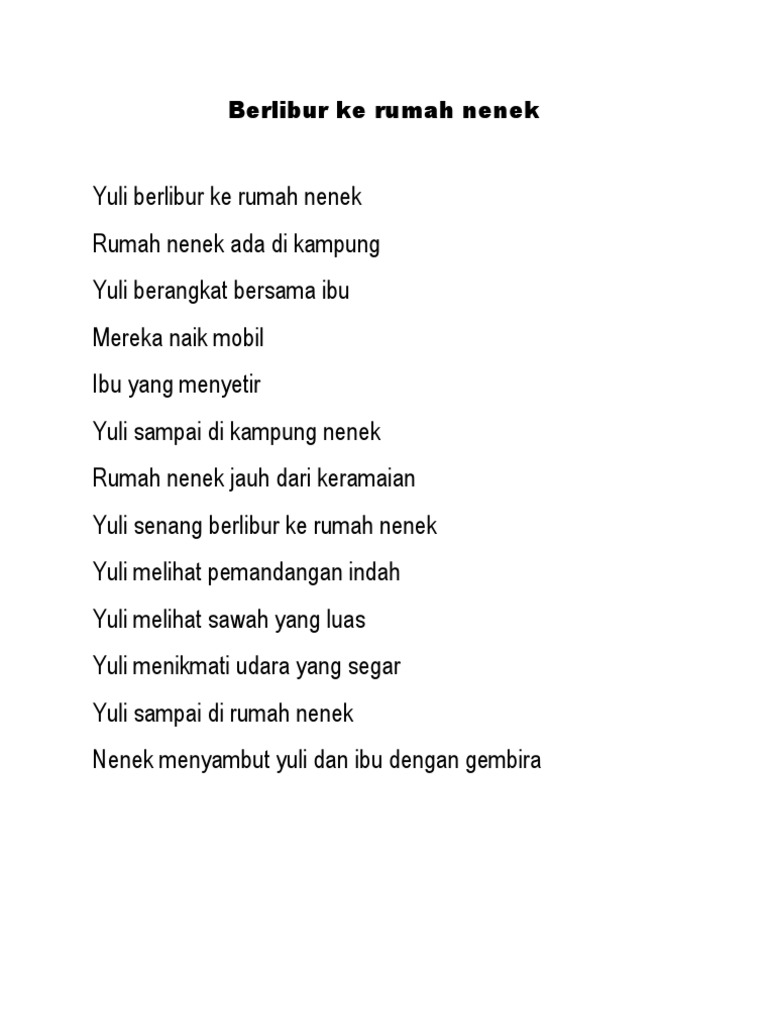 Dalam perjalanan pulang ke rumah nenek Naya Armen Onil dan Yugo meminta Diska menepi agar mereka dapat buang air. Human translations with examples. Spending my weekend di sini makan malam bersama keluarga sambil ngobrol2 ringan kebetulan lagi di bandung karena ada acara keluarga di selaras persis samping rumah nenek untuk food-nya pesan beberapa macam seperti salad buah lasagna sosis lalu ada yg pesan nasi goreng seafood nasi goreng khas rumah nenek cream soup dan french fries.